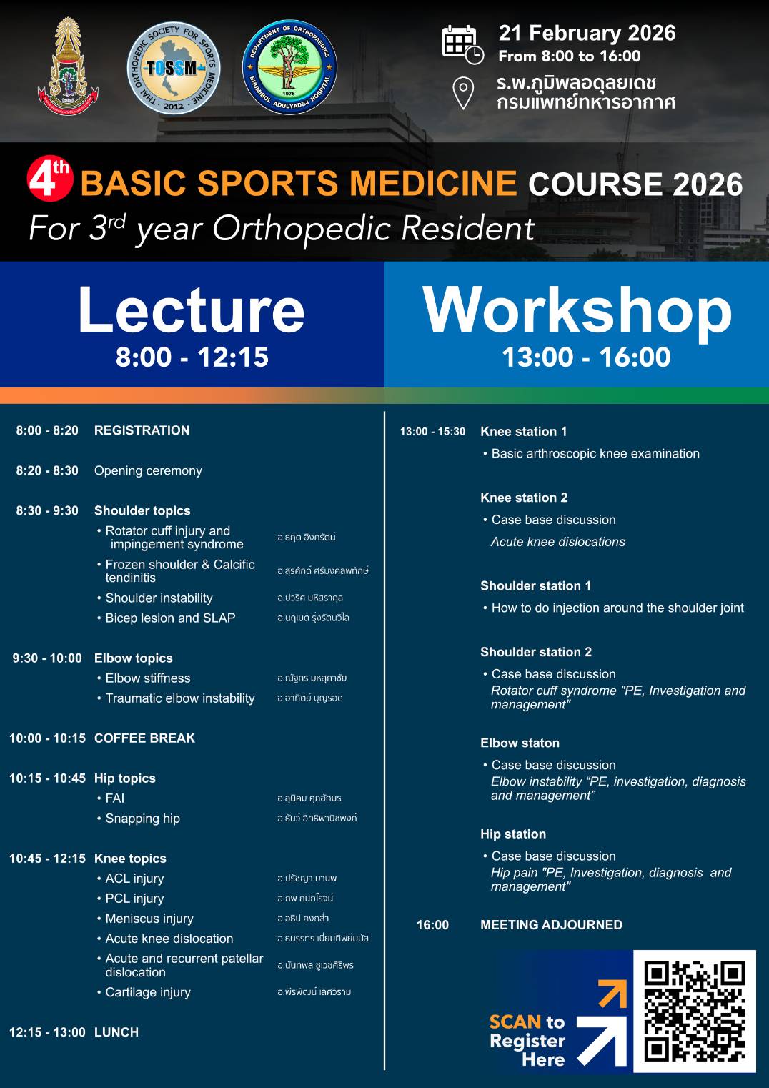 Basic Sports Medicine Course 2026 for 3rd Year Orthopaedic Resident