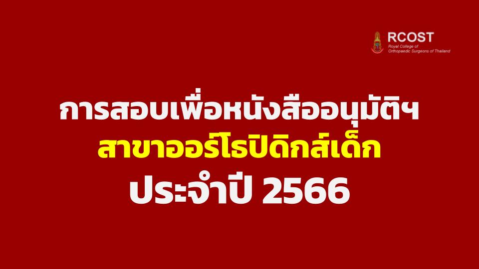 (ปิดแล้ว)การสอบเพื่อหนังสืออนุมัติฯ สาขาออร์โธปิดิกส์เด็ก ประจำปี 2566