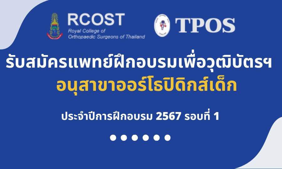(ปิดแล้ว)รับสมัครแพทย์ฝึกอบรมเพื่อวุฒิบัตรฯ อนุสาขาออร์โธปิดิกส์เด็ก รอบที่ 1