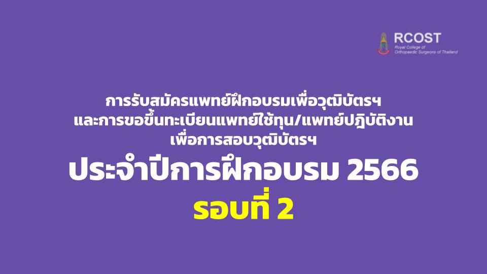 (ปิดรับ)การรับสมัครแพทย์ฝึกอบรมเพื่อวุฒิบัตรฯ และการขอขึ้นทะเบียนแพทย์ใช้ทุน/ แพทย์ปฎิบัติงาน เพื่อการสอบวุฒิบัตรฯ ประจำปีการฝึกอบรม 2566 รอบที่ 2